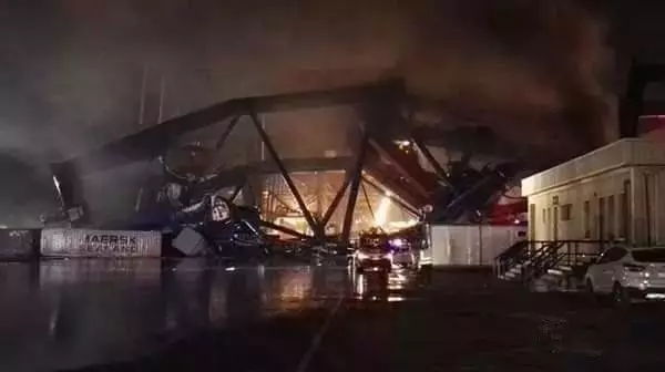 刚刚,据欧洲方面消息报道,一艘长荣旗下船名为THALASSA TYHI,运力为13806TEU的大型集装箱船在靠泊德国汉堡港期间,码头的龙门起重机与该集装箱船上烟囱发生激烈碰撞,导致其烟囱损毁,随后此集装箱船在6月22日被迫停航,并转移到汉堡港附近的Athabaska码头进行维修!